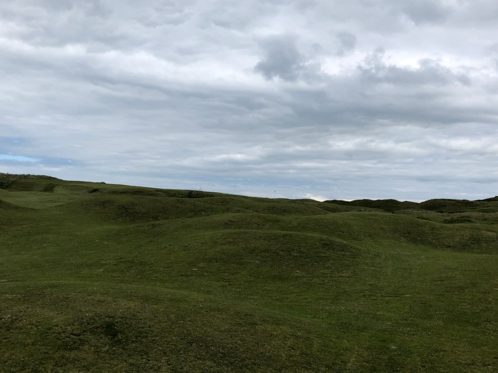 Apropos Böschung: Nicht nur ich, wir alle spielen – oft und oft bergauf oder bergab stehend – Bälle, die etwa einen Meter oberhalb des Fairways im Rough gelandet sind. Denn obwohl am Links Course scheinbar unglaublich viel Platz ist, hast du den nicht wirklich! Ein wenig zu lang, ein bisschen zu schief, eine Böe und du übst Böschungsschwünge und fragst dich, ob dir die Bäume im Heimatclub nicht doch lieber sind …