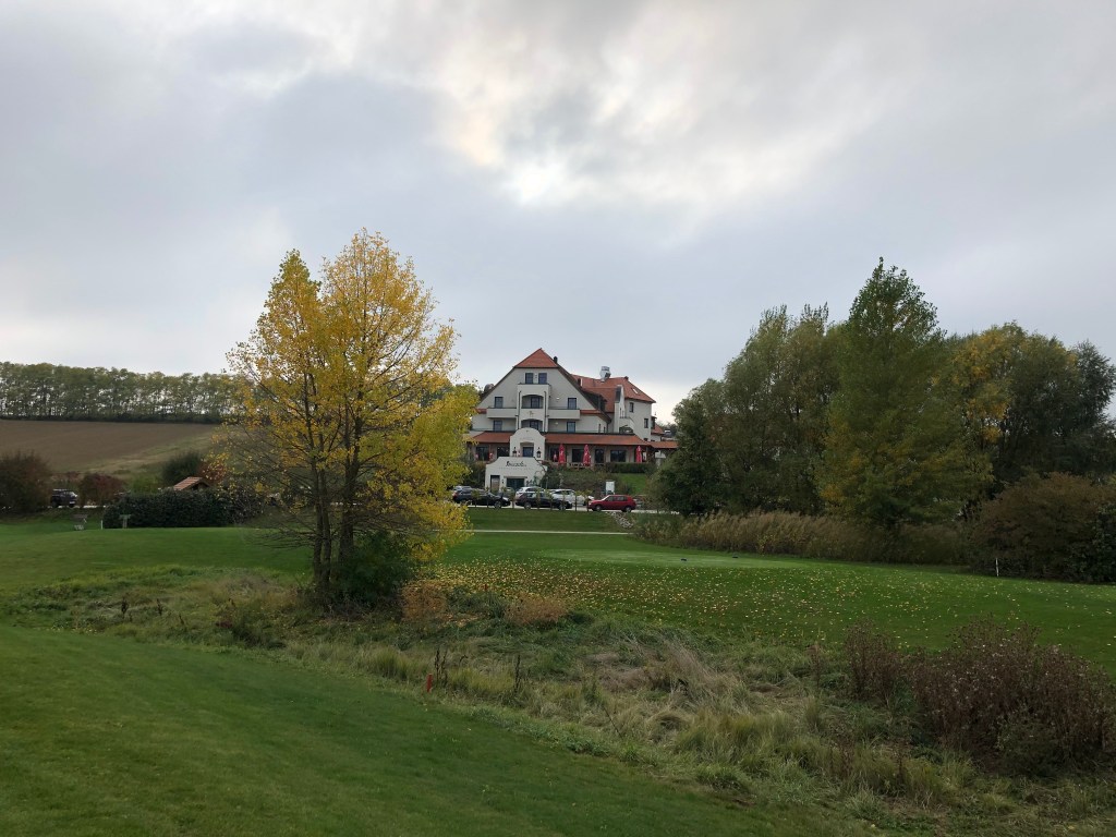 In etwa 50 Minuten schafft man es jetzt hierher aus der Wiener Innenstadt, seit die A5 Richtung Brünn verlängert wurde. Deutlich schneller als noch vor ein paar Jahren. Am Platz selbst ist es völlig ruhig, man hört lediglich die gedämpften Rufe der Fuchsjagd auf den Feldern nebenan. In Poysdorf bekommt man Natur pur. Der gesamte Platz liegt in den Hügeln neben dem Hotel Neustifter, das auch das Clubhaus beherbergt. Ein ebener Platz liegt nicht gerade vor uns, das zeigt sich schon ganz deutlich auf der 1, die steil bergauf zum Grün zu spielen ist. Etwas leichter jetzt, seit aus dem einstigen Par 4 ein Par 5 geworden ist.