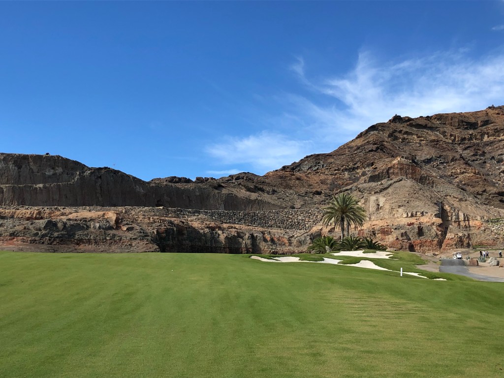 Schon wenn man minutenlang durch die herrliche Palmenallee, vorbei an blühenden Bougainvilleen, zum Platz fährt, ahnt man: Da erwartet einen etwas ganz Besonderes. So wie in Salobre wurde auch hier ein Golfplatz ins Vulkangestein gezaubert, der sich genauso das Bizarre der Landschaft zunutze macht – sich ihr aber nicht völlig unterwirft. Für mich einer der außergewöhnlichsten und schönsten Golfplätze, die ich bisher gespielt habe: Anfi Tauro Golf.