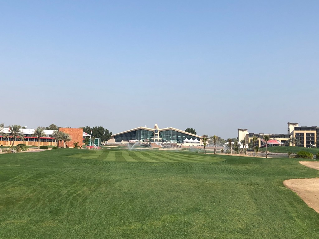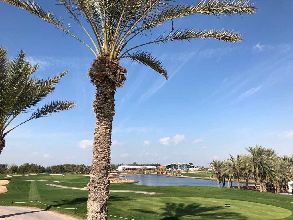 Seit heute früh überträgt SKY Sport die erste Runde der HSBC Championship auf dem Abu Dhabi Golf Course und ich kann mir ansehen, wie Koepka, Schwab, Wiesberger, Fleetwood & Co bravourös jene Bahnen meistern, die ich seit kurzem auch kenne. Vor genau 14 Tagen spielte ich als Mitglied einer deutschen Reisegruppe zwei Runden auf dem praktisch geweihten Boden vor dem berühmten Falken-Clubhaus. Tourfeeling kam damals schon auf, nicht nur wegen des ungemähten Roughs, sondern auch wegen der Aufbauarbeiten, die rund um Silvester bereits voll im Gange waren.