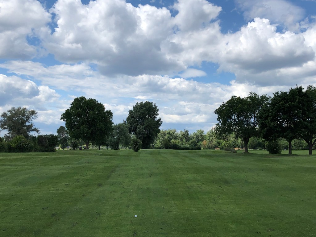 Überhaupt der Pflegezustand. Ich muss aufpassen, dass ich nicht zu sehr ins Schwärmen komme. So akkurat wie hier die tiefgrünen Fairways gemäht sind, ist es auch das Semirough, sind es die Wege zwischen den Bahnen, die Umgebungen der Grüns. Wo nicht gemäht wird, geschieht das mit Absicht, um das hohe Gras stehen zu lassen, das schon mal als begrenzendes Rough ins Spiel kommt und das der Wind äußerst fotogen bewegt. Die Grüns sind glattgewalzt, aber wenigstens nicht allzu sehr onduliert. Seine Länge ist es nicht, die den Platz knifflig macht; mit ca. 5.700 Metern von Gelb und 5.130 von Rot ist er nicht allzu lang. Eher schon sind es die manchmal durch stehengelassene Hürden oder lediglich schmuckes Buschwerk bedingten schmalen Fairways und die kleinen, bei älteren Plätzen typischen, Grüns.