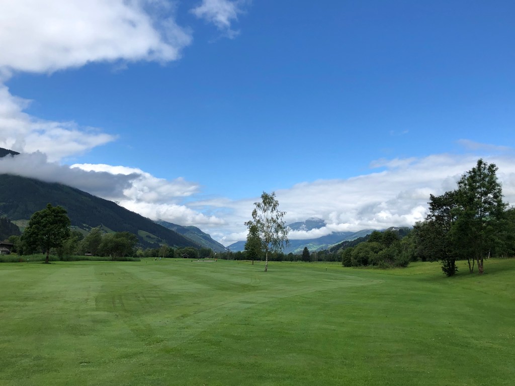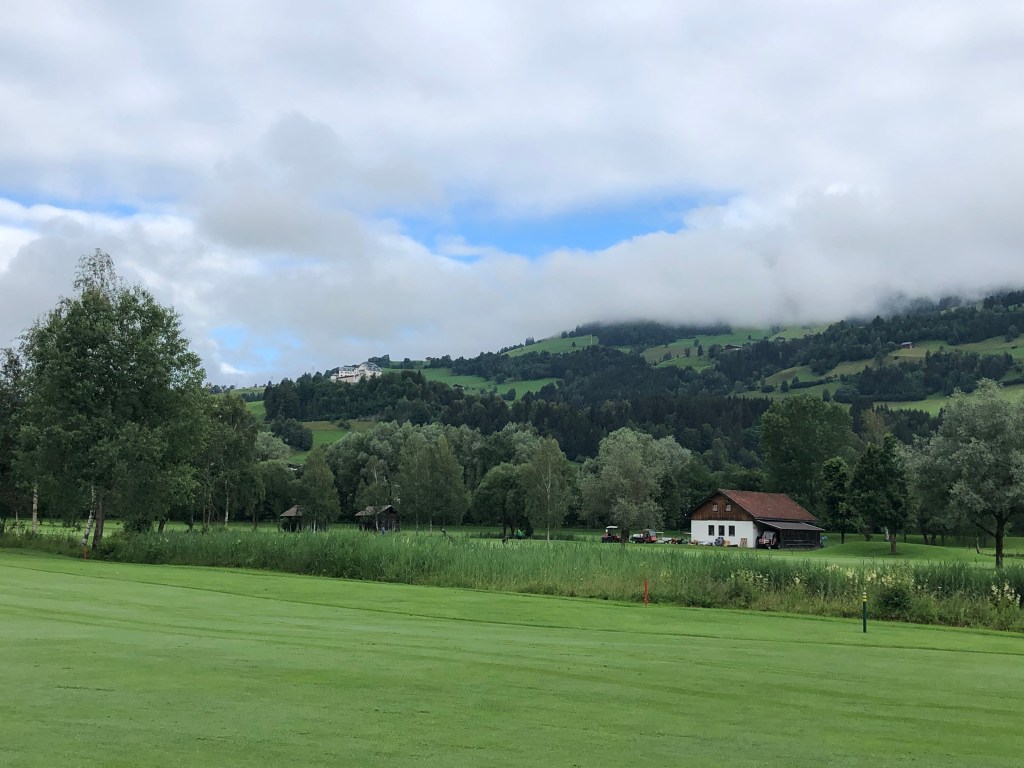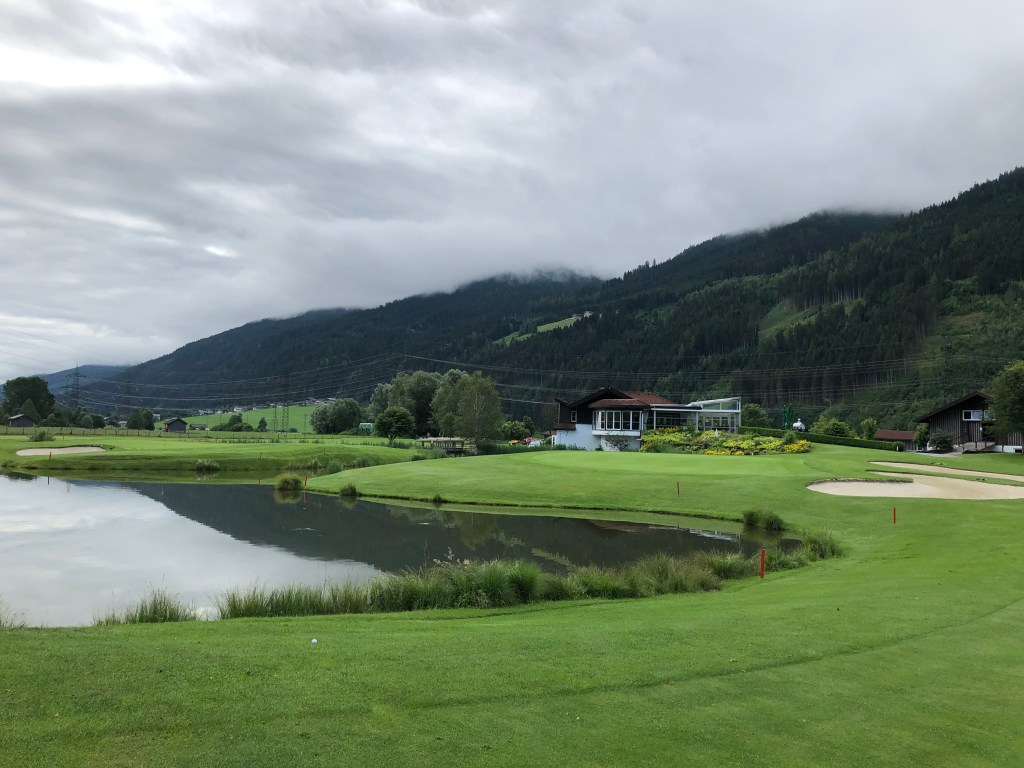 Jetzt, endlich, kommt die Sonne heraus und ich genieße auf der Terrasse meinen obligaten Radler nach der Runde und den Blick von hier aus auf den Golfplatz. Auch viele der nachkommenden Flights haben auf der 18 ihre Mühe, wie ich sehe, und Heinz, der sich zu mir gesellt, erzählt mir, dass bei Turnieren sogar Wetten auf die Spieler und Spielerinnen abgeschlossen werden… Hansi Hinterseer (Songtitel, passt doch!) würde übrigens hier oft spielen und die Hosp Niki, der Stephan Eberharter und überhaupt viele Skisportler. Na, dann! Mittersill ist jedenfalls eine kleine Anfahrt wert: etwa eine halbe Stunde, wenn man in Zell am See untergebracht ist, und ziemlich genauso weit hat man von Kitzbühel aus.