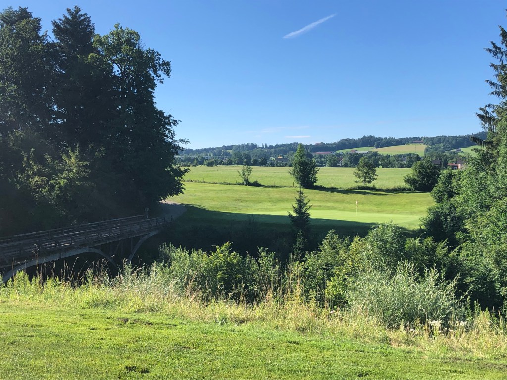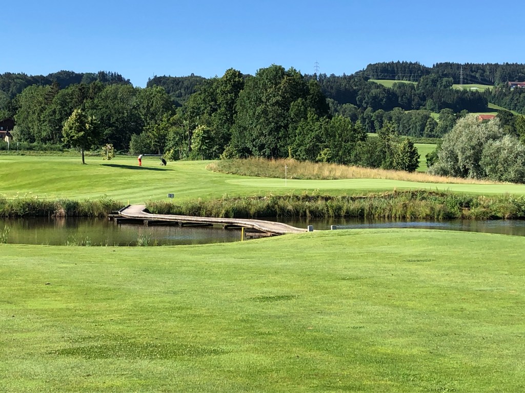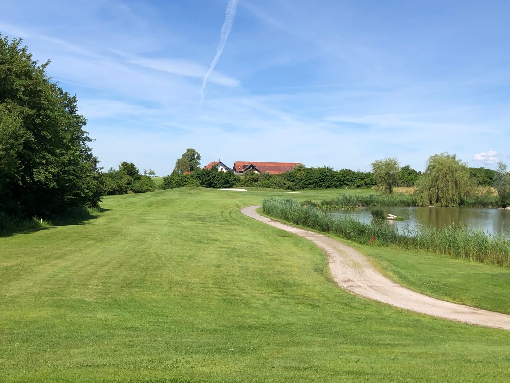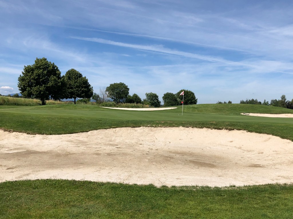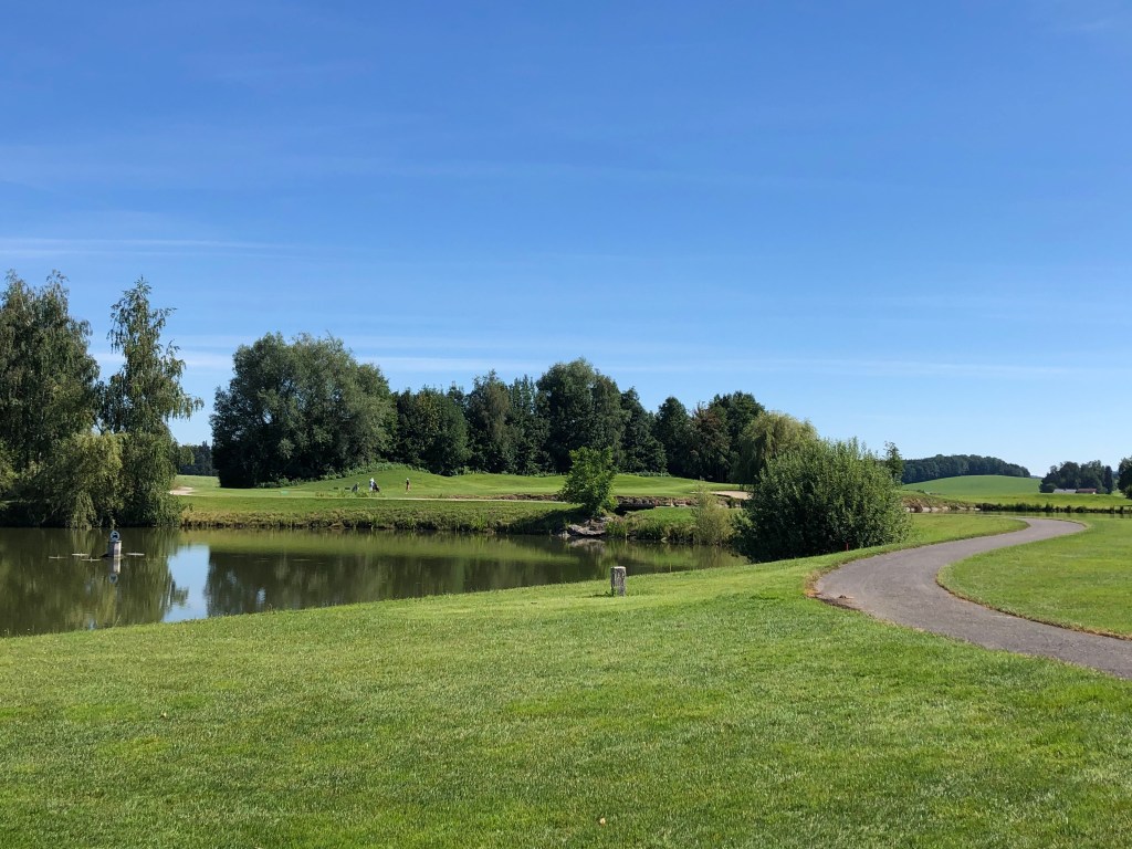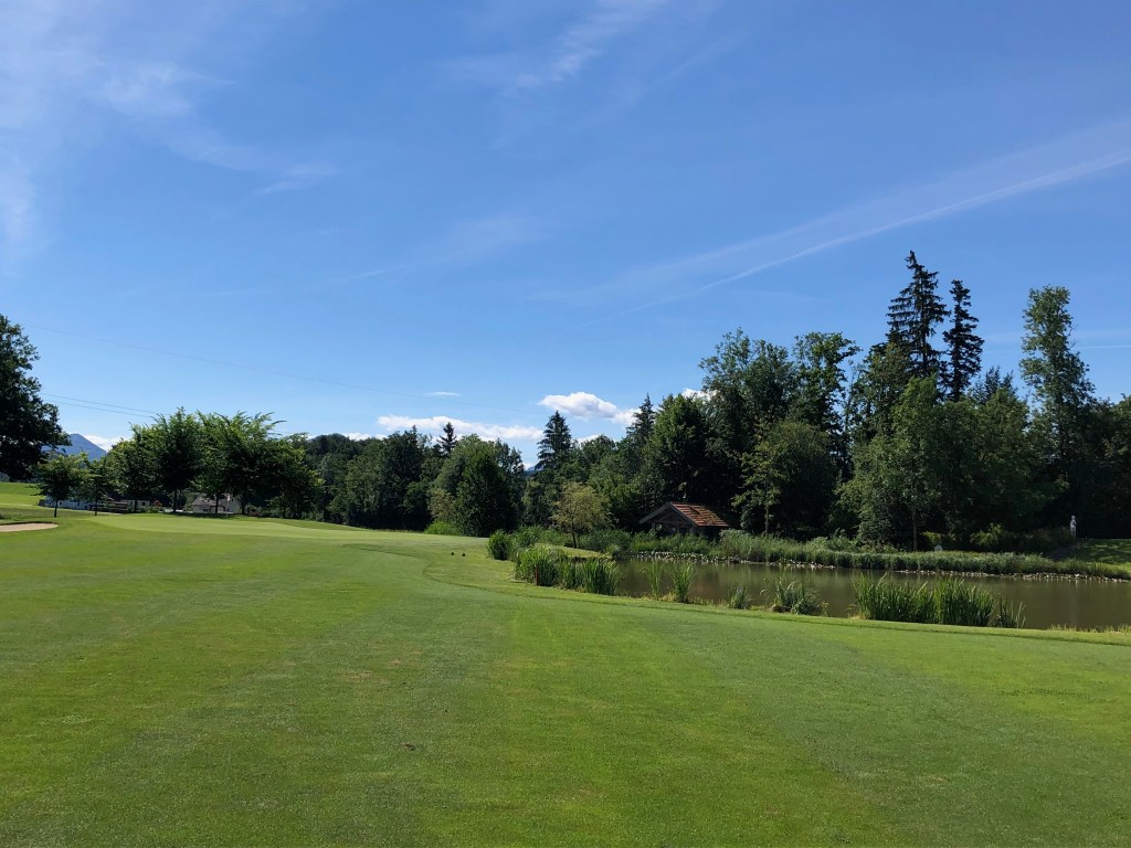 Im Salzburger Flachgau, aber gar nicht eben, liegt der GC Salzburg Eugendorf, wohl einer der coolsten Plätze Österreichs, wie ich finde. Jede Bahn ein Ereignis, fast keine zum „Erholen“ zwischendurch, dazu immer wieder schöne Ausblicke in die sanfthügelige Landschaft. Viel Wasser? Ja! Aber auch das macht erstaunlicher Weise irgendwann richtig Freude.