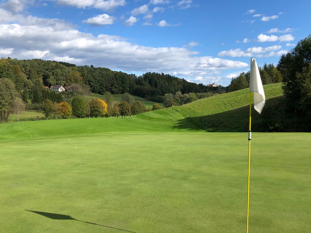 In Wien und auf den Golfplätzen rundum hingen seit Tagen Nebel und Regenwolken wie oft um diese Jahreszeit. Golffreundin T. und ich setzten uns deshalb kurzentschlossen gemeinsam in ein Auto und fuhren nicht ganz zwei Stunden gen Süden. Der GC Gut Freiberg war unser Ziel, denn der Wetterbericht versprach Sonnenschein und angenehme herbstliche Temperaturen für den Platz in Gleisdorf, nahe Graz.
