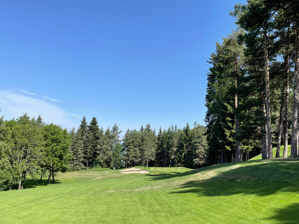 Wenn man von Bozen Richtung Petersberg fährt, muss man Kurven mögen. Wunderschöne Alpenstraßen schlängeln sich an Flüssen entlang in die Höhe und Lifttrassen zeugen davon, dass man sich in einer Gegend befindet, wo eigentlich Schigefahren wird. Man kann hier aber auch sehr gut golfen, wenn man der sommerlichen Hitze im Tal entfliehen will und Auf und Ab nicht scheut. Nicht einmal 100 Höhenmeter wären am Platz zu überwinden, sagt der Starter an Tee 1 treuherzig und erklärt mir fürsorglich schon die Lage aller 18 Löcher. So freundlich wie sein Empfang waren auch schon die Begrüßung im Sekretariat und die Bedienung auf der Clubhausterrasse beim Kaffee am kühlen Morgen. Die Range ließ ich auf dem Weg zum ersten Abschlag rechts liegen. Kaltstart.