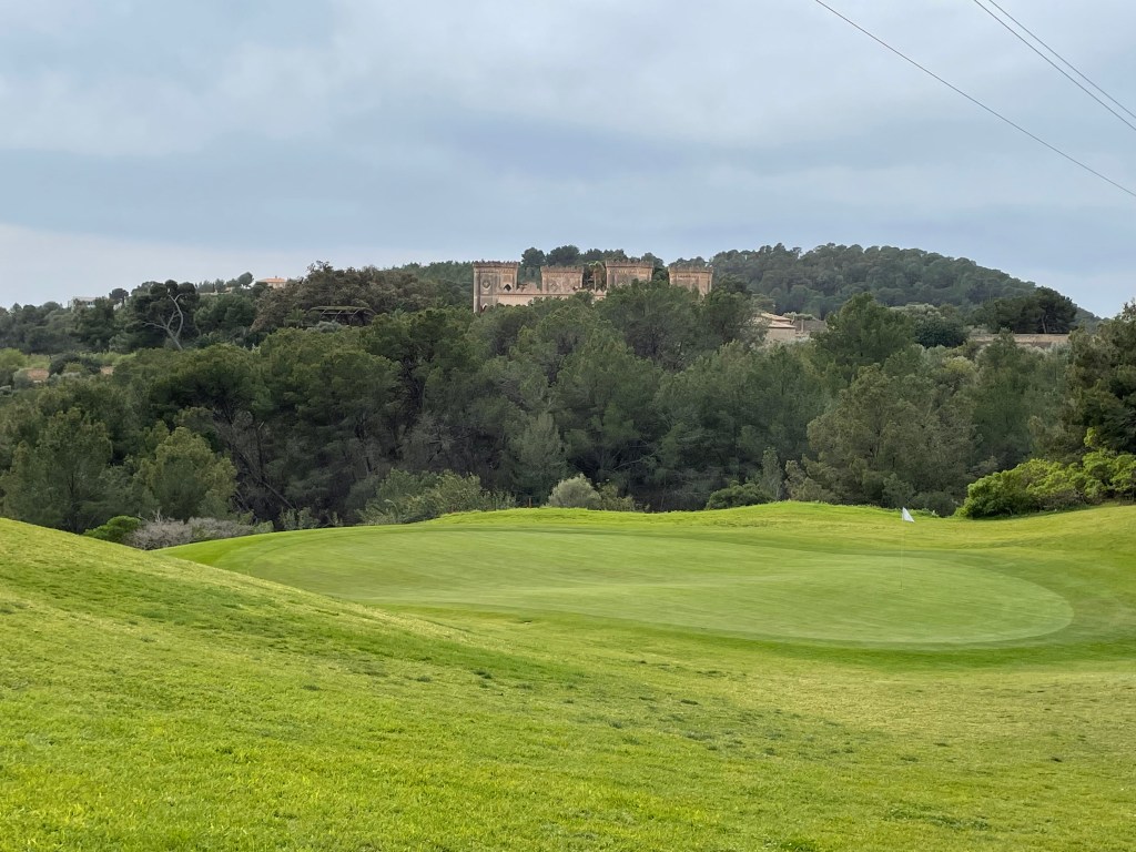 Ganz in der Nähe von Palma liegt in den Bergen Real Golf de Bendinat. Und „Berge“ sagt es schon: Das ist ein Platz mit gewaltigen Höhenunterschieden, viel Kiefernwald, sehr engen Spielbahnen, dafür aber atemberaubenden Aussichten auf das Meer und das namensgebende Castell.