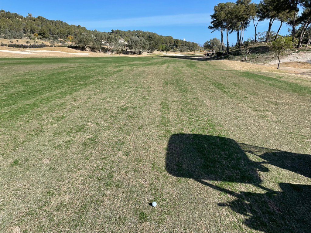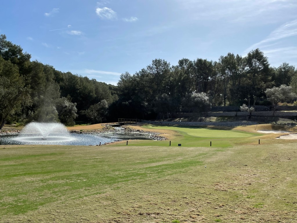 Es tut mir Leid, aber als ich dort war, präsentierte sich Son Muntaner in denkbar schlechtem Zustand. Was nicht am Umstand liegt, dass hier Bermudagras gepflanzt wurde, sondern am Zustand der Fairways. Das hätte man auf der Website zumindest kommunizieren müssen und eine Reduktion des Greenfees (93 Euro) wäre angebracht gewesen. Wahrscheinlich können sich dank der intensiven Pflegemaßen Golfer:innen aber schon in ein paar Wochen über einen perfekten Platz freuen. Immer da: das sehr schöne Clubhaus auf mehreren Etagen und ein wirklich toller Proshop mit sehr großem Sortiment. Cart braucht man hier keines. Greenfee in der Hauptsaison 93/147/154 je nach Tageszeit.