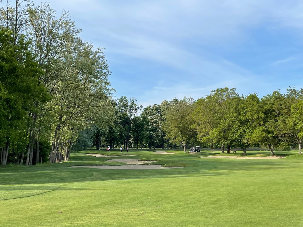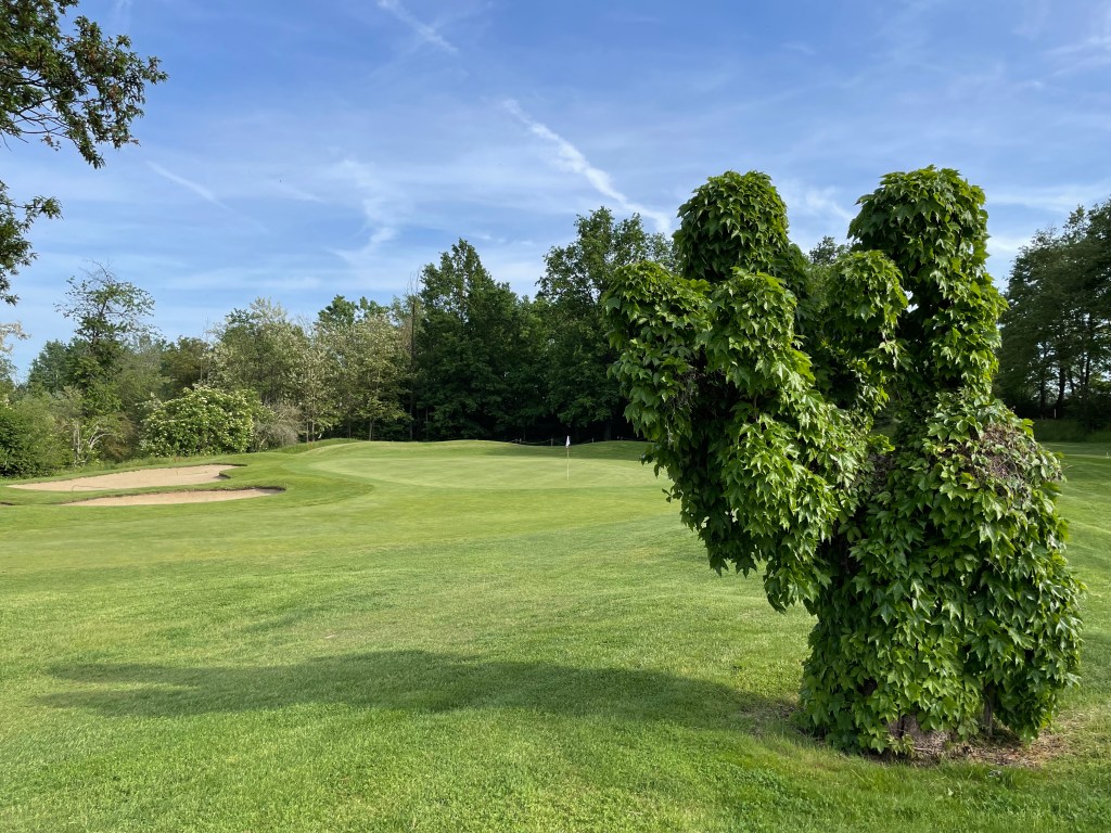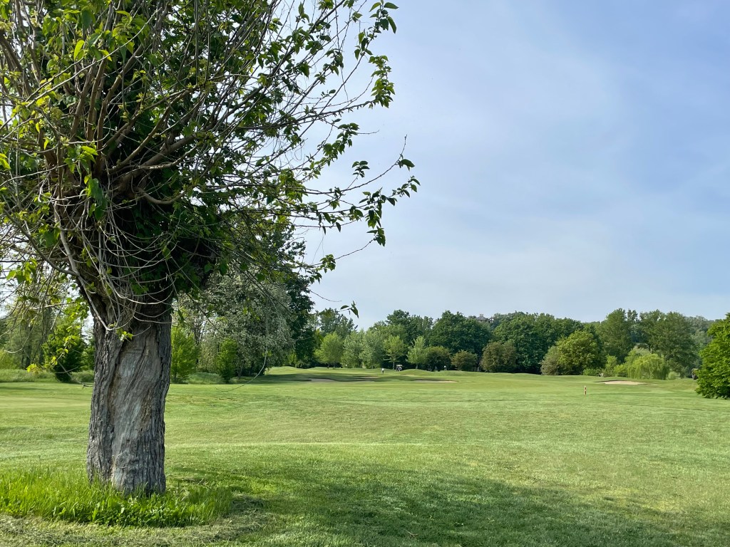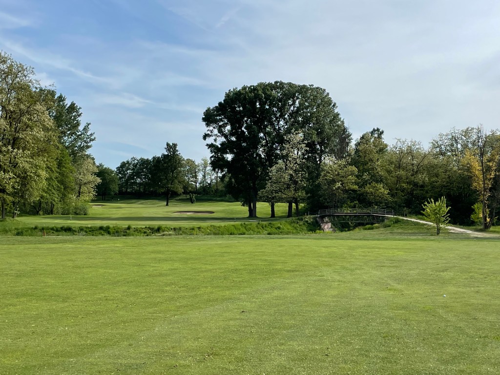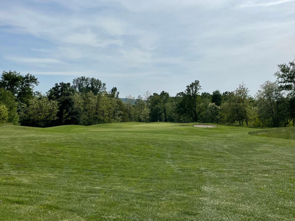 La Marchesa beginnt nicht allzu schwierig mit einem breiten Par 4, und so bleiben die meisten Bahnen auch. Hohe Pappeln säumen die kurzgemähten welligen Fairways, stehen für meine Schlagweiten aber immer weit genug weg. Die Bahnen schlängeln sich durch sanftes Hügelland, großartige Steigungen sind hier nicht zu bewältigen. Wasser kommt erst am sehr schönen Par 5 der 8 ins Spiel und später auf der 10, einem geradezu malerisch angelegten, aber herausfordernden Dogleg. Damit beginnt auch der „Amen Corner“ von La Marchesa: bis zur 12 knifflige Bahnen, an die der Wald deutlich näher herangerückt ist. Sehr gepflegt ist der Platz jetzt Ende Mai und besonders gut sind die sehr schnellen Grüns. Optisch bietet Villa Carolina alles, was das Piemont kann. Immer wieder den Blick auf Weingärten, kleine Steinvillen oder größere Weingüter, ab und zu auch ein wenig ins Land. Nicht einfach zu spielen sind die allesamt sehr langen Par 3 und auf den breiten Fairways haben die US-Platzarchitekten zuweilen ausgiebige Bunkerlandschaften situiert, die sich optisch aber sehr gut machen.