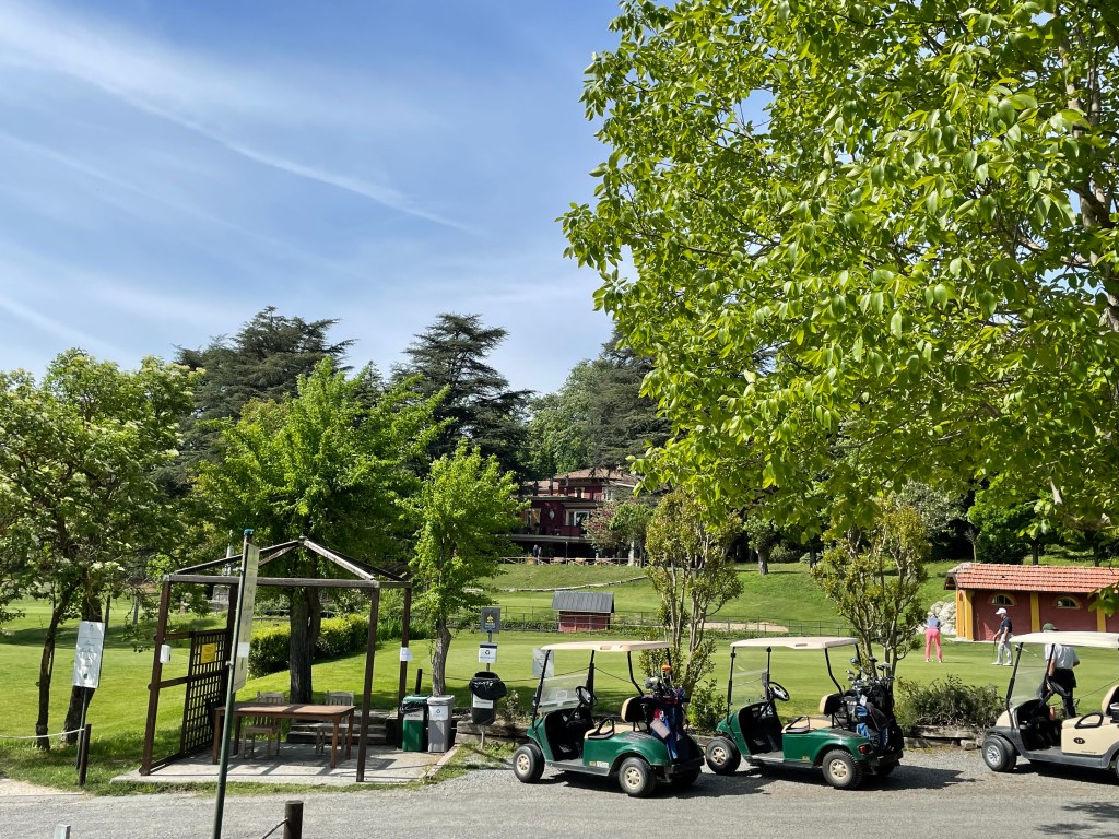 Vor dem altehrwürdigen, dunkelrot gefärbelten Clubhaus nimmt mir der Caddymaster das Bag ab, und im Sekretariat werde ich freundlich begrüßt, obwohl ziemlich viel los ist an diesem Wochentag. Am Putting Green übt fröhlich eine Schar Kinder unter Pro-Bewachung, im Proshop ist die Hölle los und an der Halfway, die auf dem Weg zu Tee 1 und 10 und neben den Übungsanlagen liegt, werden in lebhaftem Italienisch ganz offensichtlich spannende Runden besprochen. Was für eine Atmosphäre! Italien pur.