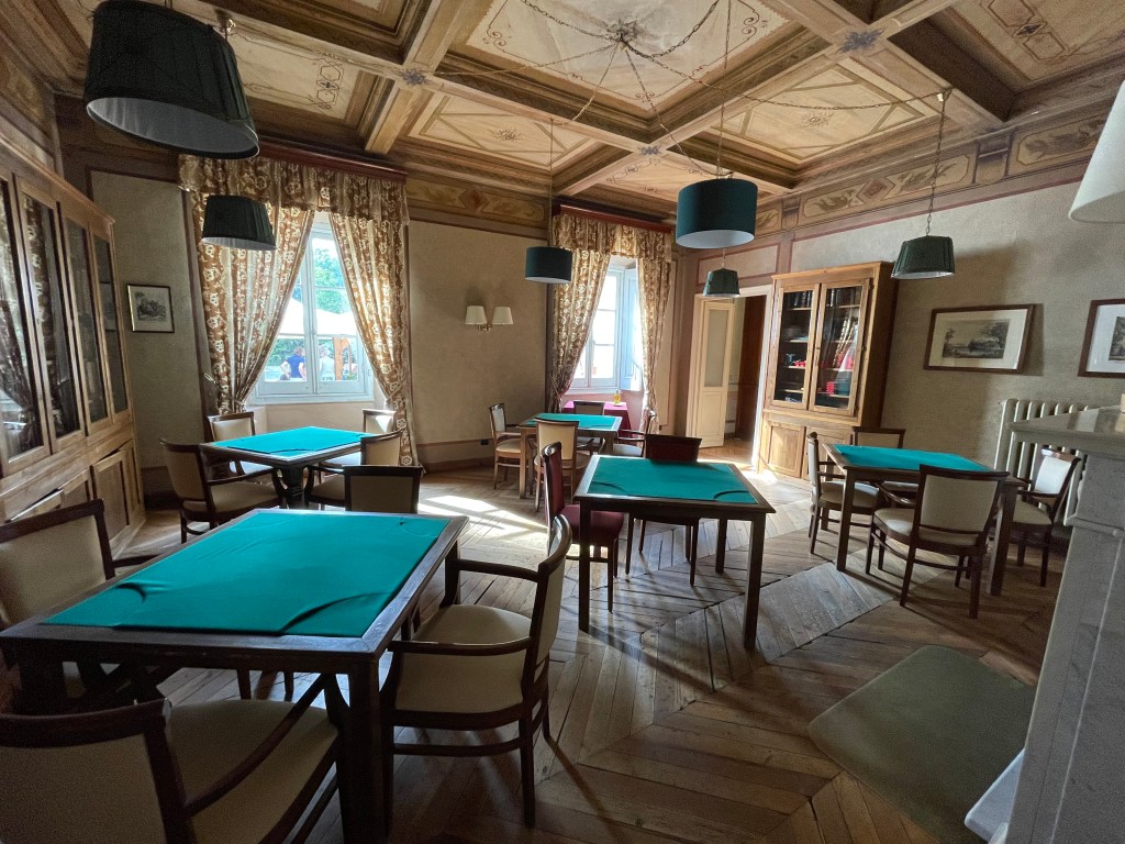 Ich schaffe es bis zum Schluss, mich in den beiden ineinander verschlungenen Kursen nicht zu verheddern. Die französischen Flightpartner sind da auch keine große Hilfe. Überhaupt sind sie schweigsam und spielen verbissen, ach, was hätte ich mir die fröhlichen Italiener von der Halfway gewünscht! Wir spielen also konzentriert auch noch die letzten Bahnen leicht hügelan zurück zum Clubhaus. Dort, im 1. Stock, wähnt man sich eher in England denn im Piemont, so traditionell ist die Einrichtung. Neben der modernen Bar gibt es zwei Räume fürs Clubleben, Bridge-Tische inklusive. Unbedingt hineinschauen!