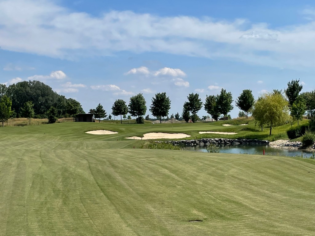 Nur eine gute Stunde von Wien entfernt, nahe Bratislava, liegt die noch junge 27-Loch-Anlage des Green Resort Hrubá Borša. Der Championshipkurs rund um ein paar türkis leuchtende Schotterteiche ist die Anreise allemal wert. Wir trafen den Platz in Topzustand an und wurden ein wenig an Fontana erinnert.