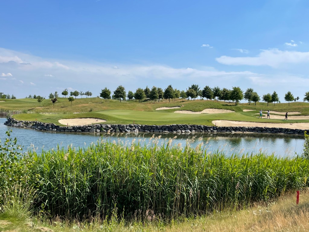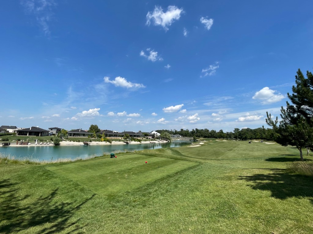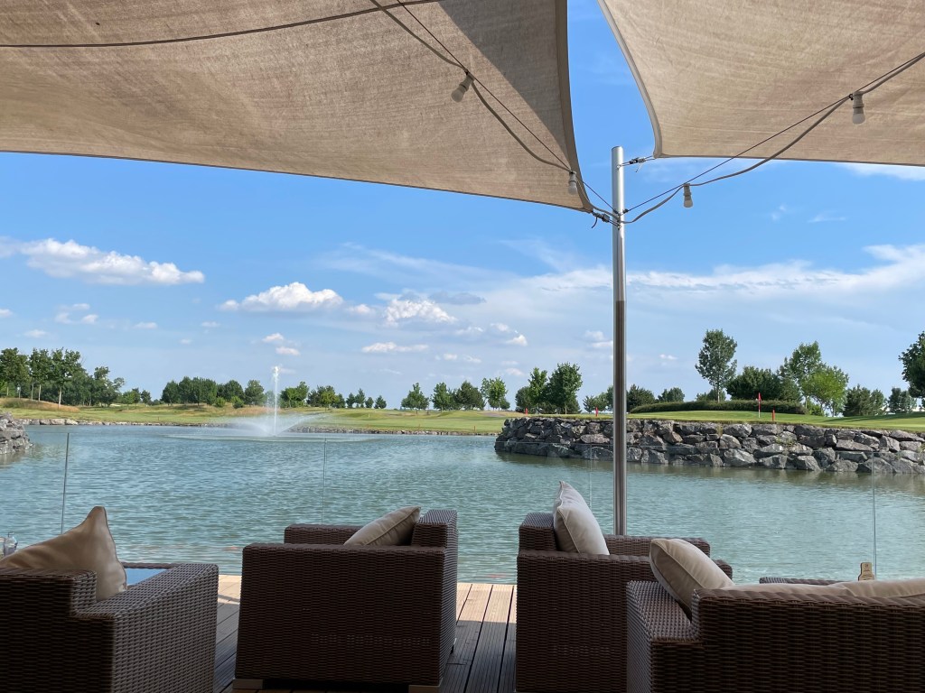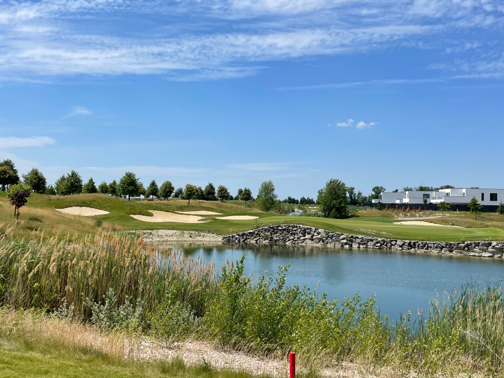 Es gibt so viele schöne Golfplätze rund um Wien, und hätte ich mich nicht einer Gruppe angeschlossen, wäre ich wahrscheinlich nie auf die Idee gekommen, zum Golfen extra in die Slowakei zu fahren. Penati ja – aber die Plätze in der Nähe von Bratislava sind wohl eher unbekannt. Etwa 1:10 Stunden von der Wiener Innenstadt entfernt, erreicht man den GC Borša, mitten im flachen Nirgendwo. Hier hat man 27 Loch auf die Wiese gesetzt. Rund um ein paar angelegte Schotterteiche liegen Appartmenthäuser. Ein bisschen gebaut wird auch immer noch, was das Spielgeschehen aber nicht stören soll. Die erste Überraschung: das moderne Clubhaus mit einer wunderschönen Loungeterrasse am Wasser und, wie es sich gehört, mit Blick auf die Grüns von 9 und 18.