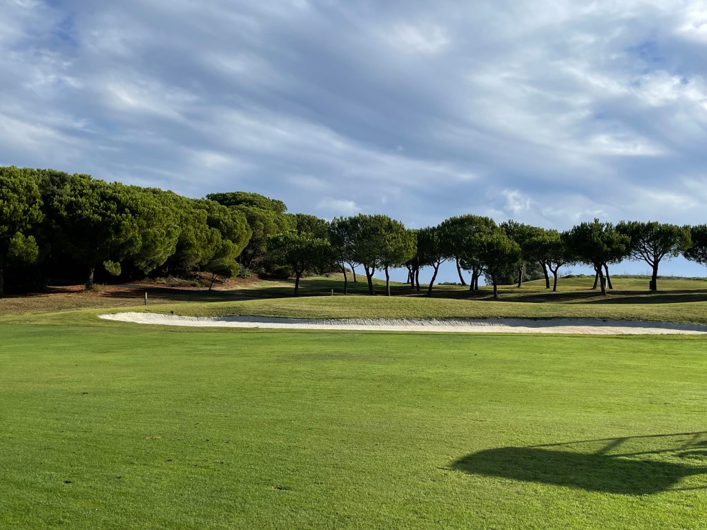 Das schwierigste Loch am Platz, die 8, beginnt mit einem blinden Schlag irgendwo Richtung Orangenhain. Birdiebook lesen oder Platzkundige mitnehmen, wäre hier von Vorteil. Vorlegen oder über den Bach spielen? Bergauf zum Grün ein langes Eisen nehmen und zu riskieren, in einem der vielen Bunker zu landen? Entspannung bieten auch die nächsten Bahnen nicht wirklich, Pinien seitlich und auch mal mittig, hängende Fairways und erhöht liegende, schnelle Grüns fordern uns sehr, sind dafür aber optisch die reinen Augenweiden.