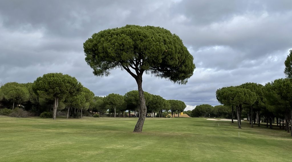 Dabei sind viele Bahnen durchaus spannend! Die 5 etwa, ein Par 3, das stark nach links hängt, bei dem Rechtshalten aber auch keine Lösung ist. Die 6 schlängelt von Anfang an, hängt nach rechts, um immer schmäler zu werden und in einem malerischen Pinienhain zu enden. Das Par 3 der 9 geht steil bergauf, hängt stark nach rechts und ist außerdem noch 158/138 Meter lang.