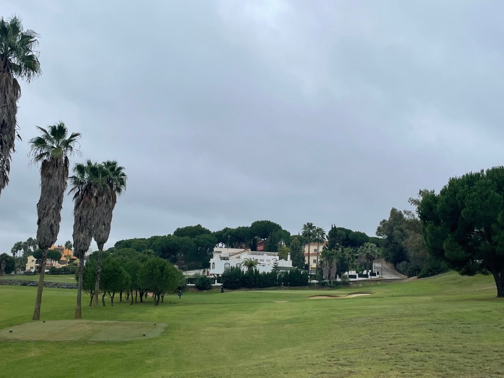 Es regnet an diesem Vormittag in Andalusien und die Natur freut sich. Ich hingegen streife auf dem Puttinggrün schon mal die Regenjacke über. Putten muss man hier mit ordentlich Schmackes, damit die Bälle überhaupt Richtung Loch rollen. Der Caddymaster schlurft letztendlich doch noch aus seinem Schuppen und bringt mir einen antiquiert aussehenden e-Trolley (der mich allerdings nicht im Stich lassen sollte). Irgendwie alles stimmig zum restlichen Ambiente. Am Eingang, auf der Range, im Clubhaus liest man das Gründungsjahr des Clubs, 1916, und glaubt das sofort. Das Restaurant ist angeblich neueren Datums, macht aber einen tristen Eindruck. Sekretariat und „Proshop“ befinden sich in einem Container mitten auf dem Parkplatz. Immerhin: der Empfang ist sehr freundlich, das Greenfee mit 40 Euro moderat und durchaus angemessen.
