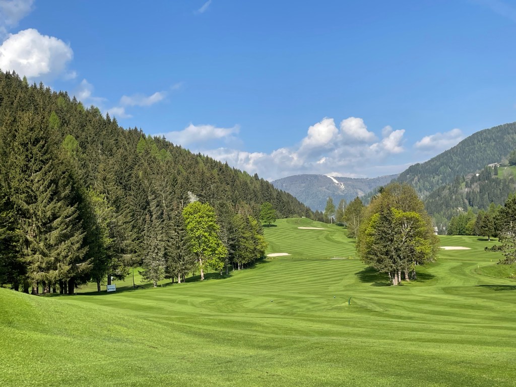 Nockberge – das klingt schon irgendwie nach steilen Bahnen. Doch davon gibt es in Bad Kleinkirchheim genau genommen nur fünf. Auf 1.100 Metern Seehöhe spielt man meistens auf sanft ansteigenden welligen Fairways und genießt die Berge in der Ferne.