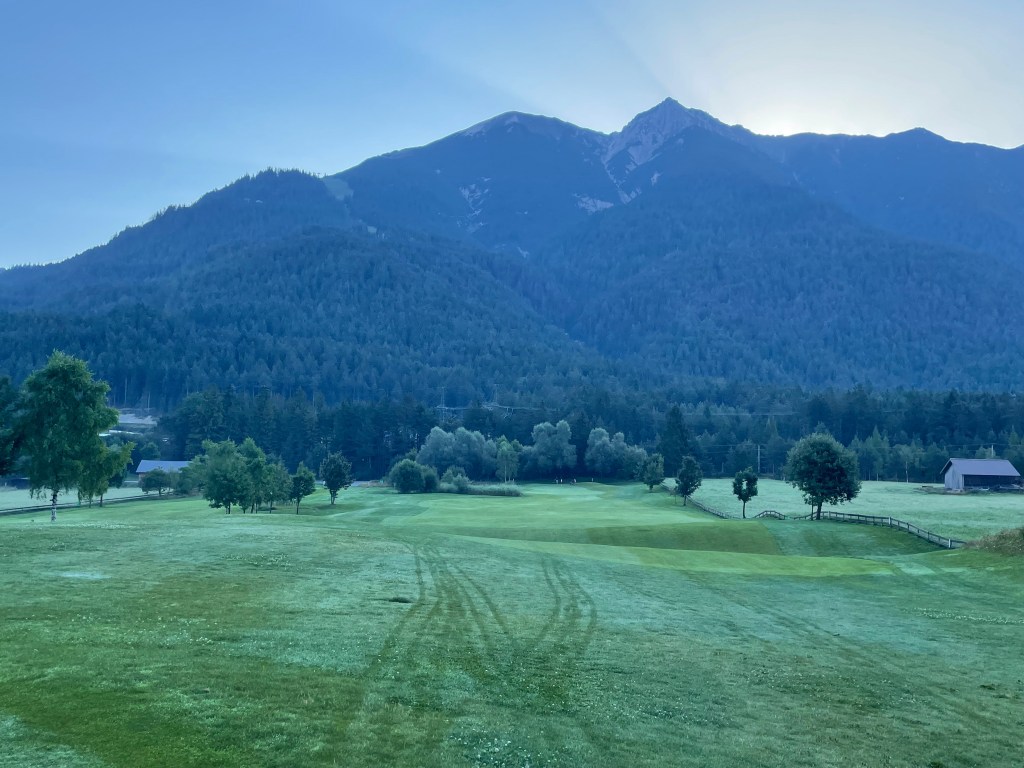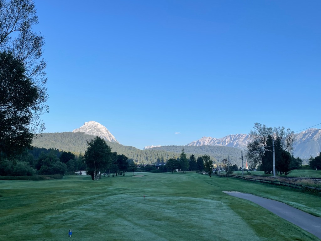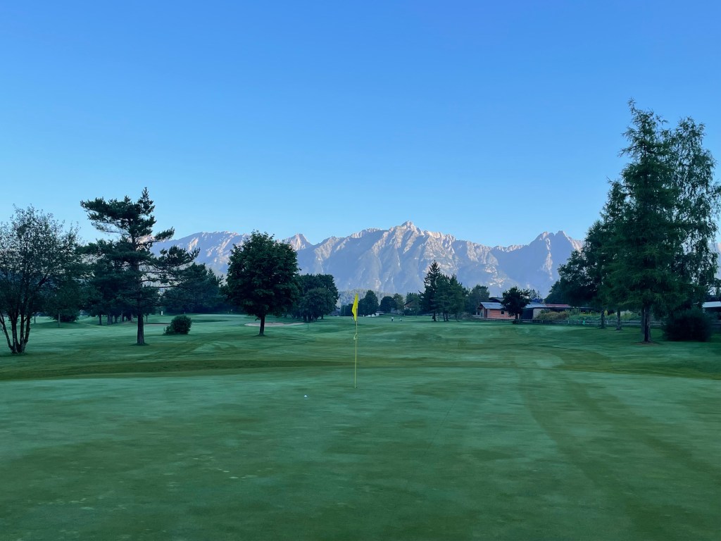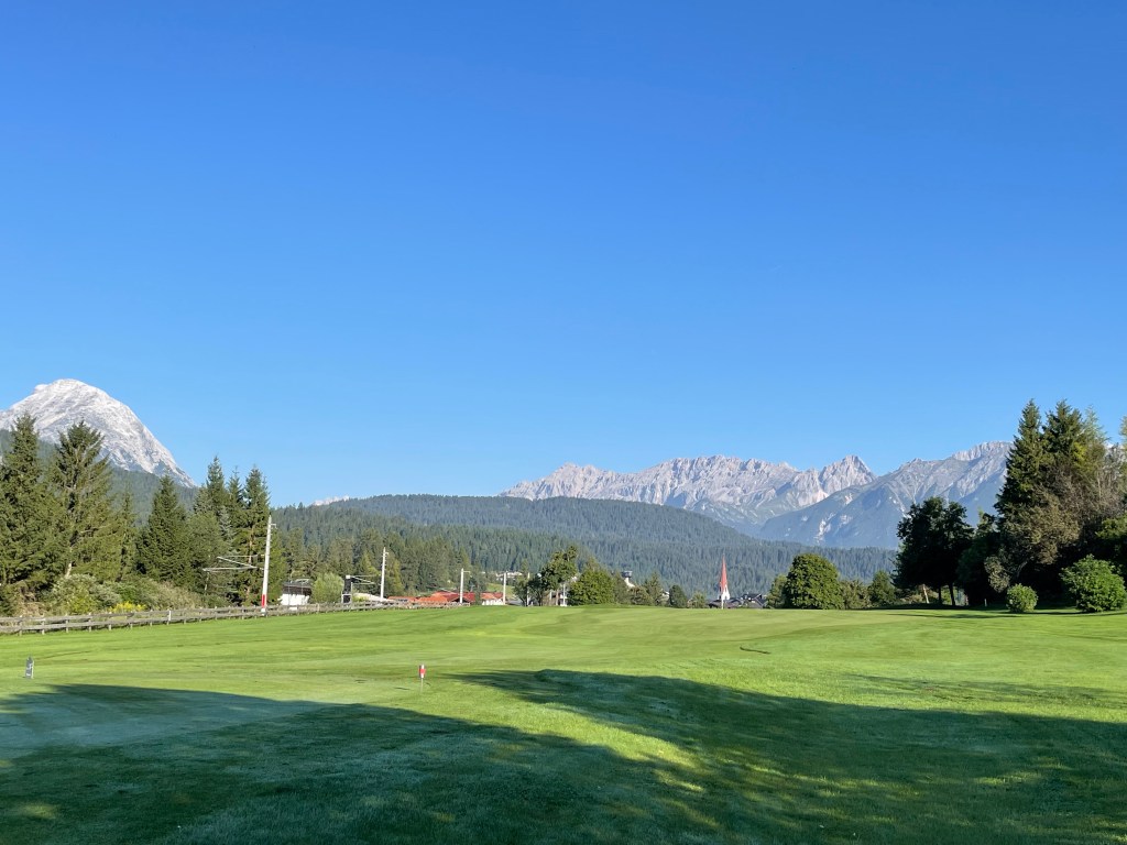 9 Bahnen Golf praktisch mitten im Ort – ideal für eine Runde zwischendurch oder – wie für mich – frühmorgens an einem heißen Tag. Ein Tiroler Alpinplatz ist Seefeld-Reith nicht: Wer ebenes Golf mag, ist hier richtig, ohne auf Bergpanorama verzichten zu müssen.