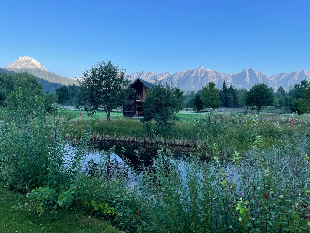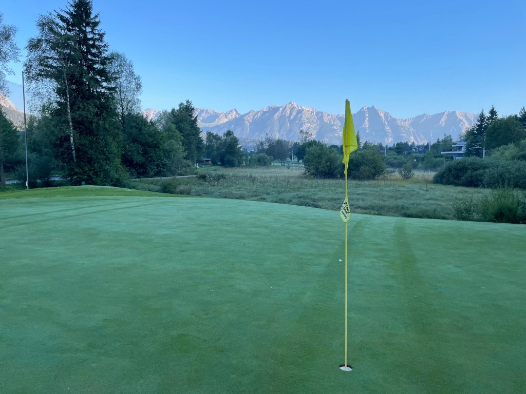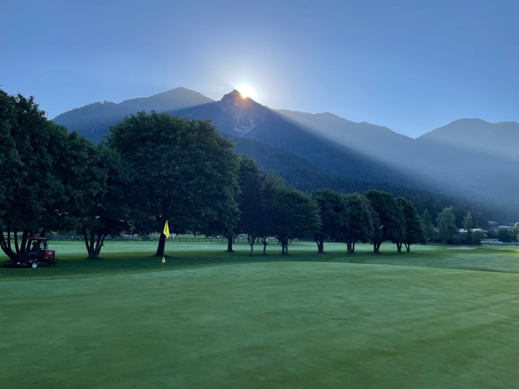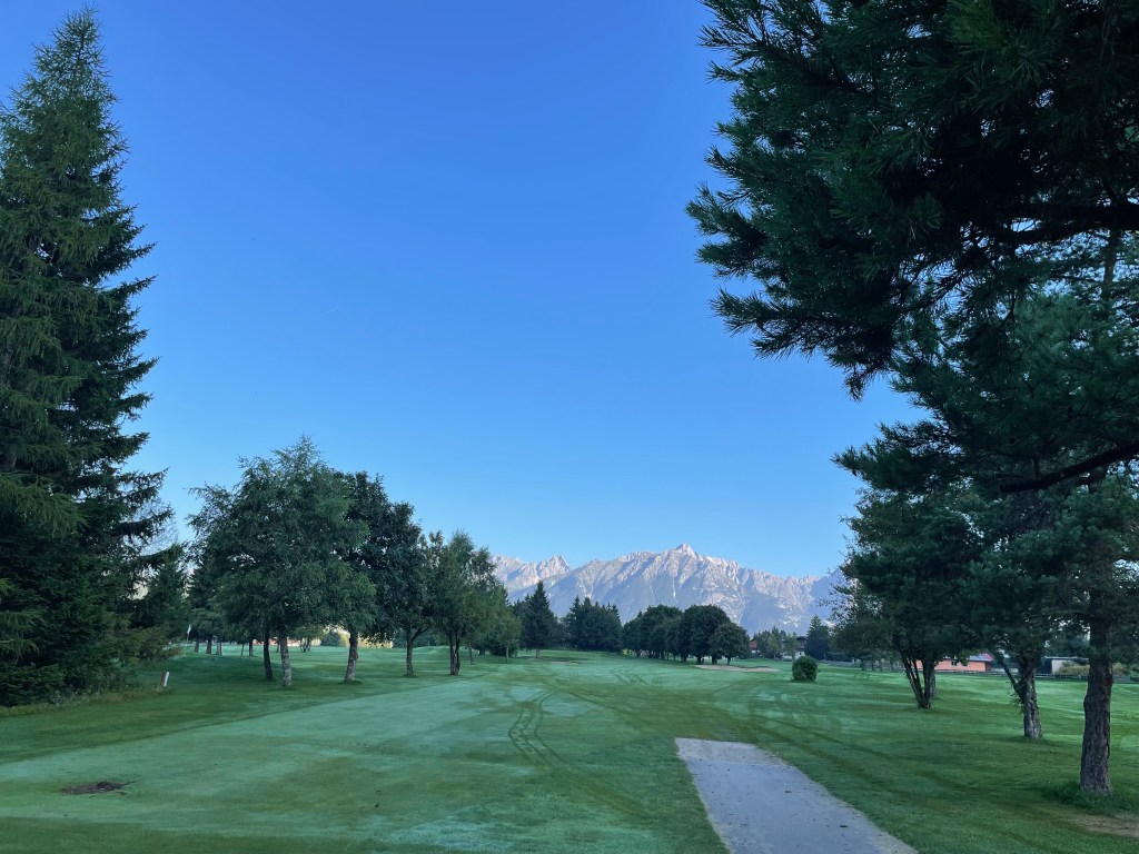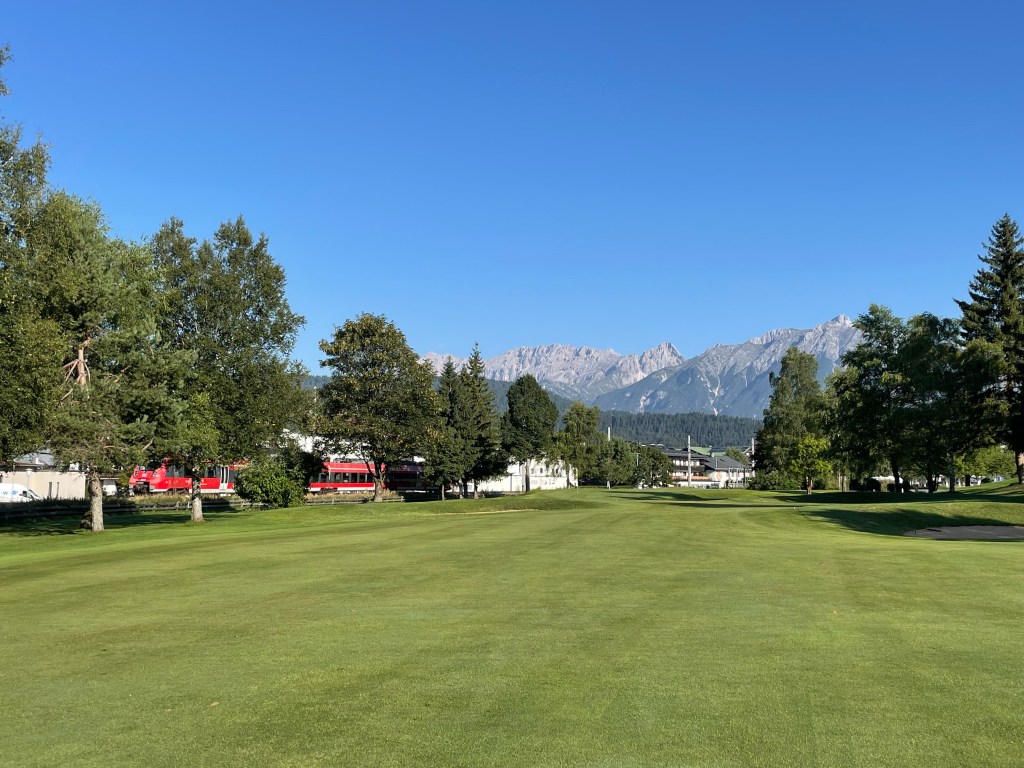 9 Bahnen Golf praktisch mitten im Ort – ideal für eine Runde zwischendurch oder – wie für mich – frühmorgens an einem heißen Tag. Ein Tiroler Alpinplatz ist Seefeld-Reith nicht: Wer ebenes Golf mag, ist hier richtig, ohne auf Bergpanorama verzichten zu müssen.