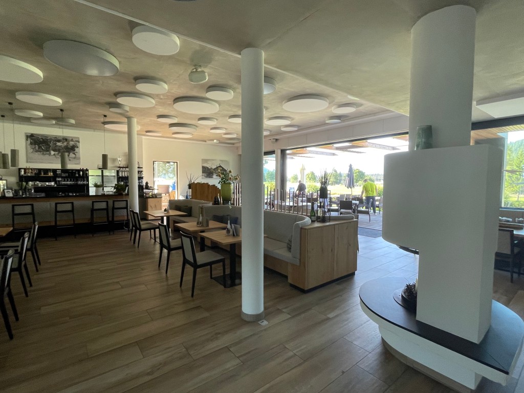 Wer in Seefeld Reith eine zweite Runde spielt, tut das von anderen Abschlägen als bei der ersten. Zumindest für die Herren gibt es überall einen Alternativabschlag. Eineinhalb Stunden habe ich für die Runde gebraucht, Sekretariat und Restaurant sind jetzt geöffnet, das Clubhaus stilvoll tirolerisch und sehr chic.