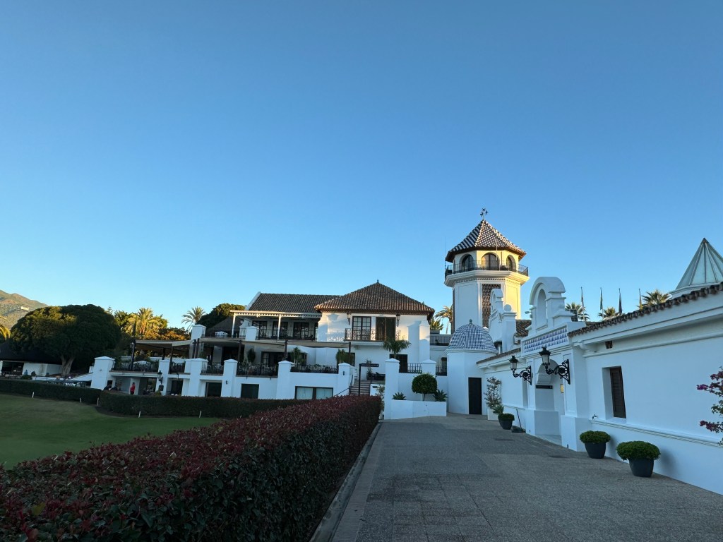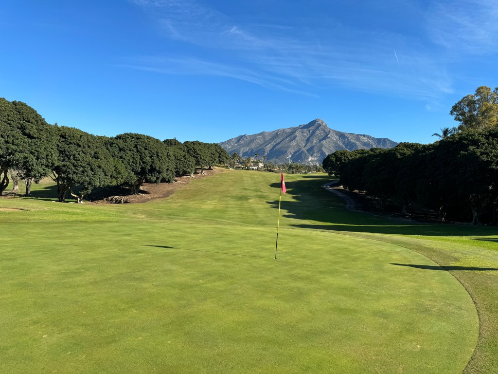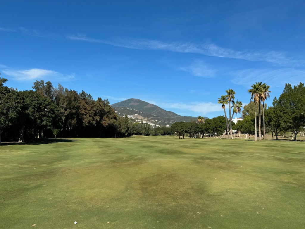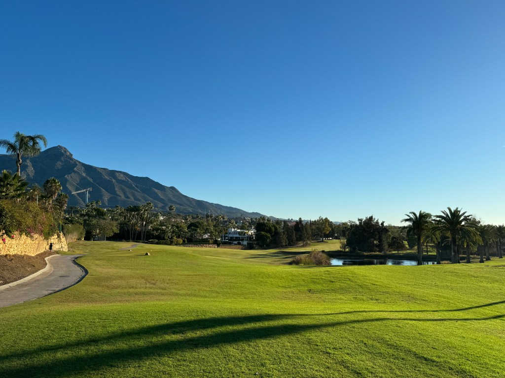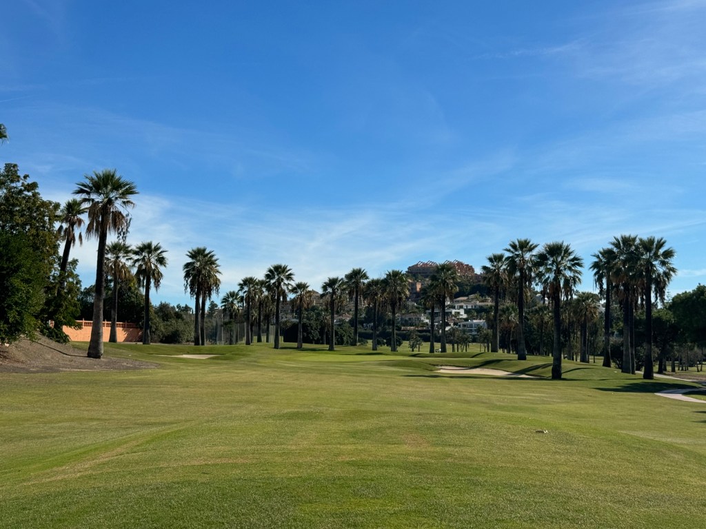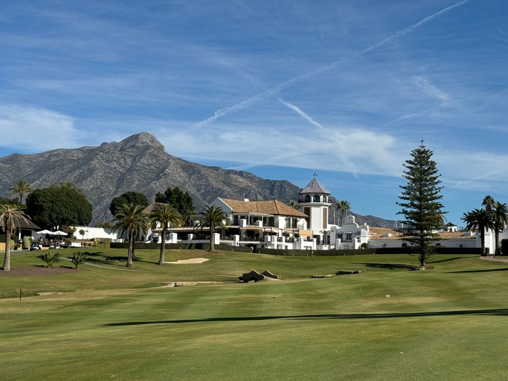 Die ersten Neun mit sehr viel Auf und Ab, die zweiten wohl die einzigen flachen Bahnen rund um Marbella: das ist Los Naranjos mit (nona) Orangenbäumen und Palmen, imposant gelegen vor dem Pico de Concha. Und mit einem wahrlich imposanten Clubhaus!