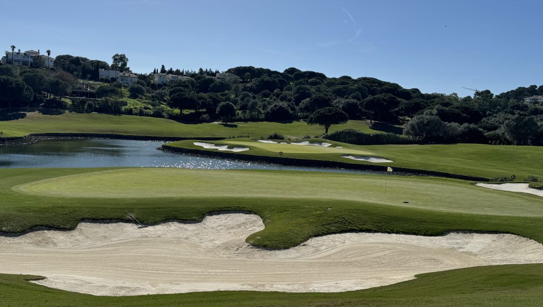 Der Old Course von San Roque ist vom Gelände her einer der sanftesten Plätze an der Costa del Sol - ohne Felsen, Schluchten und mit moderaten Steigungen. Und mit einer noblen Optik, die neben den Teppichfairways nicht ein einziges wildwachsendes Gräselein unter den Korkeichen zulässt. Dazu passend als eleganter Hingucker: das phantastische Clubhaus. The same … Weiterlesen Costa del Sol/Deluxe – San Roque Golf Club/Old Course: der sanfte Elegante mit den großen Grüns