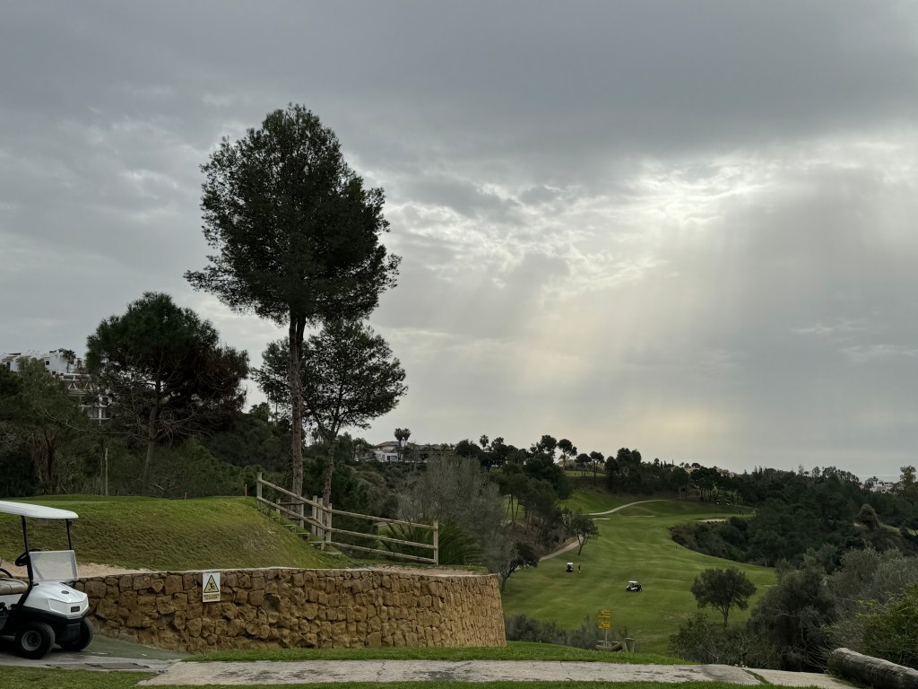 Graue Wolken hängen über den Bergen und Schluchten von Benahavis an diesem Märzdonnerstag. Außer mir sind heute nicht Viele die Straße nördlich von Marbella durch endlos scheinende Apartmentanlagen hier herauf gefahren. Ich kenne die Topografie hier mittlerweile ganz gut und nehme ein Cart, im Sekretariat interessiert man sich nicht sehr für Kundschaft.