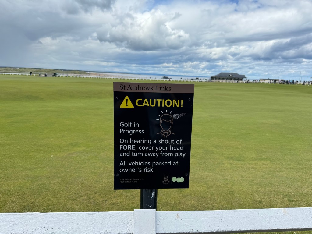 Eine Runde auf dem Old Course ist einfach ein unbeschreibliches Erlebnis. Nicht der Platz an sich – da gibt es schönere. Sondern das ganze Drumherum. Gänsehaut am 1. Tee. Nehmt euch einen Caddie, das gehört in St. Andrews einfach dazu. Die 100 Pfund sind wirklich gut investiert. Geht vorher ins St. Andrews Links Clubhouse und dort hinauf auf die Terrasse mit 180 Grad Blick über die Plätze und auf die bekannte Skyline. Schaut euch die Universitätsstadt St. Andrews an, bummelt durch die hübschen alten Gassen mit Steinhäusern, Geschäften und Lokalen, besucht den Graduation Court der Uni (dort haben übrigens William und Kate studiert…). Und ja, shoppt in den vielen großen und kleinen Läden rund um die Plätze Golfbekleidung und Souvenirs. (Je weiter weg vom Old Course, umso günstiger 😉