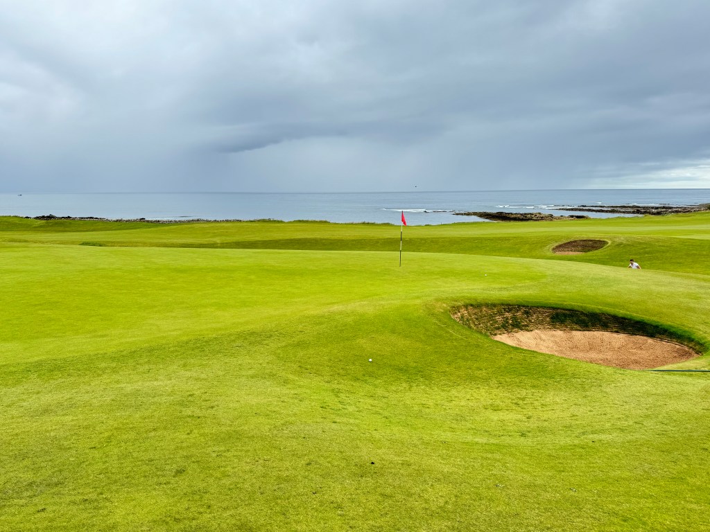 „Königliche Scheune“, so heißt der Platz mit schottischem Understatement. In Wahrheit ist Kingsbarns der schönste Platz, den ich der Grafschaft Fife rund um St. Andrews gespielt habe. Makellose Fairways und Grüns, das Meer oft in Schlagweite und ein Design, das Freude macht.