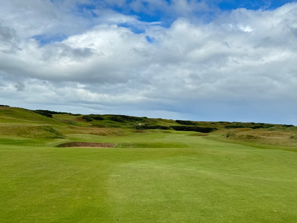 Eine der schönsten Bahnen, die 16 – nur Gras und Bunker, die man nicht sieht, vor denen der Caddie aber warnt
