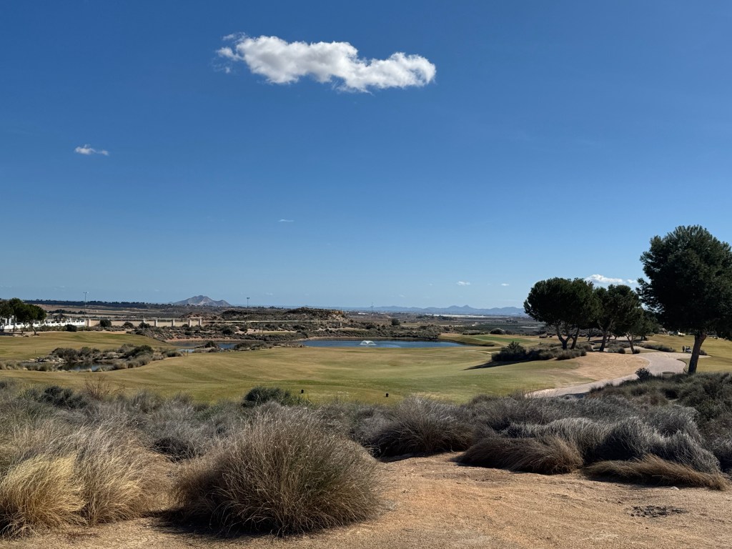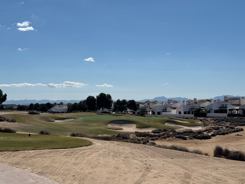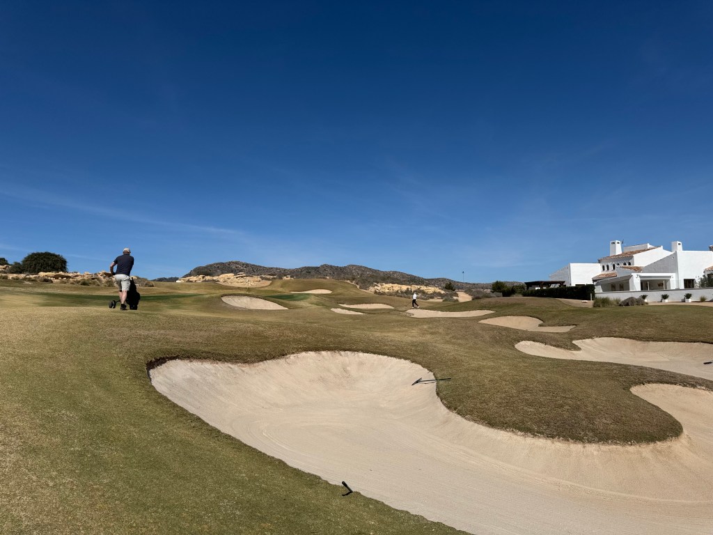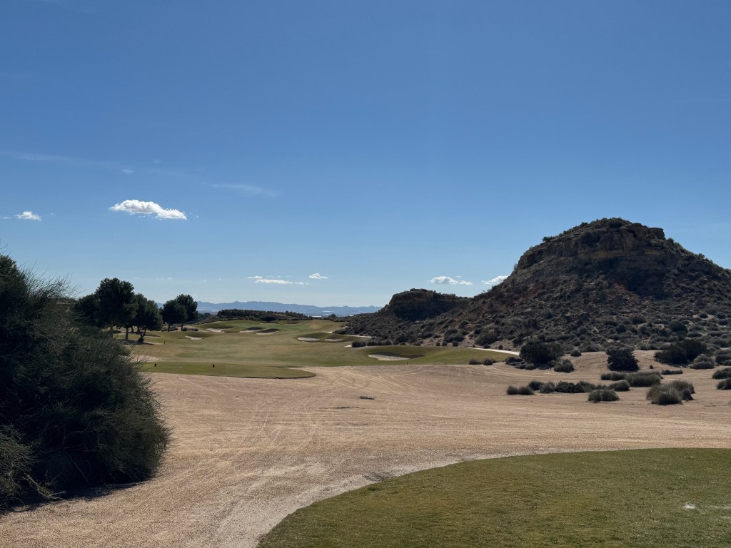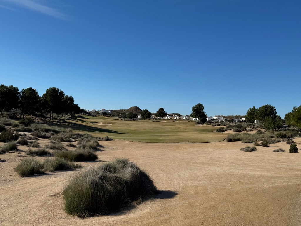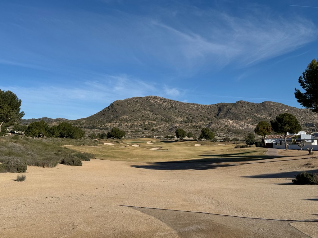 Südlich der spanischen Stadt Murcia (Flughafen Alicante) entstanden in meist landwirtschaftlich genutzter Gegend in den letzten 20 Jahren mehrere Resorts – ein Golfkurs mittendrin gehört marketingtechnisch offenbar zum guten Ton. Als Architekten für 6 Plätze hat man sich niemand Geringeren als Jack Nicklaus geholt. Also findet man innerhalb der Appartmentsiedlungen für ihn Typisches: Bahnen mit markanten Wellen, stark ondulierte und meist erhöhte Grüns und vor allem Bunker, Bunker, Bunker.