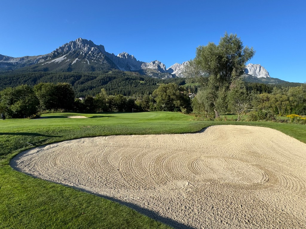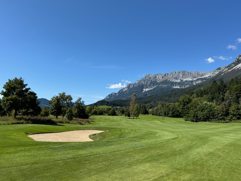 Den Platz muss man wegen der atemberaubenden Kulisse einfach spielen! Ein richtiger Urlaubs-Kurs mit relativ schlichten, breiten Bahnen, sehr gut für alle Spielstärken geeignet. Ich habe den 18-Loch-Kurs „Wilder Kaiser“+“Ellmau“ gespielt. Es gibt weitere 9 Loch mit Namen „Tirol“. Muss auch erwähnt werden: leider auf einigen Bahnen Straßenlärm, weil der Platz an der vielbefahrenen Bundesstraße St. Johann i.T./Wörgl liegt. Entzückendes Clubhaus im alpinen Stil, Terrasse natürlich mit Kaiser-Blick. Vom Restaurant „Sonneck“ hört man nur Gutes, ich war leider nicht dort. Nächstes Mal dann.