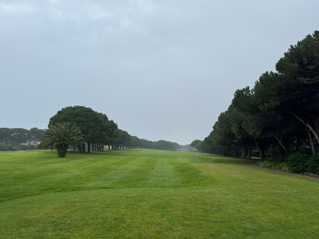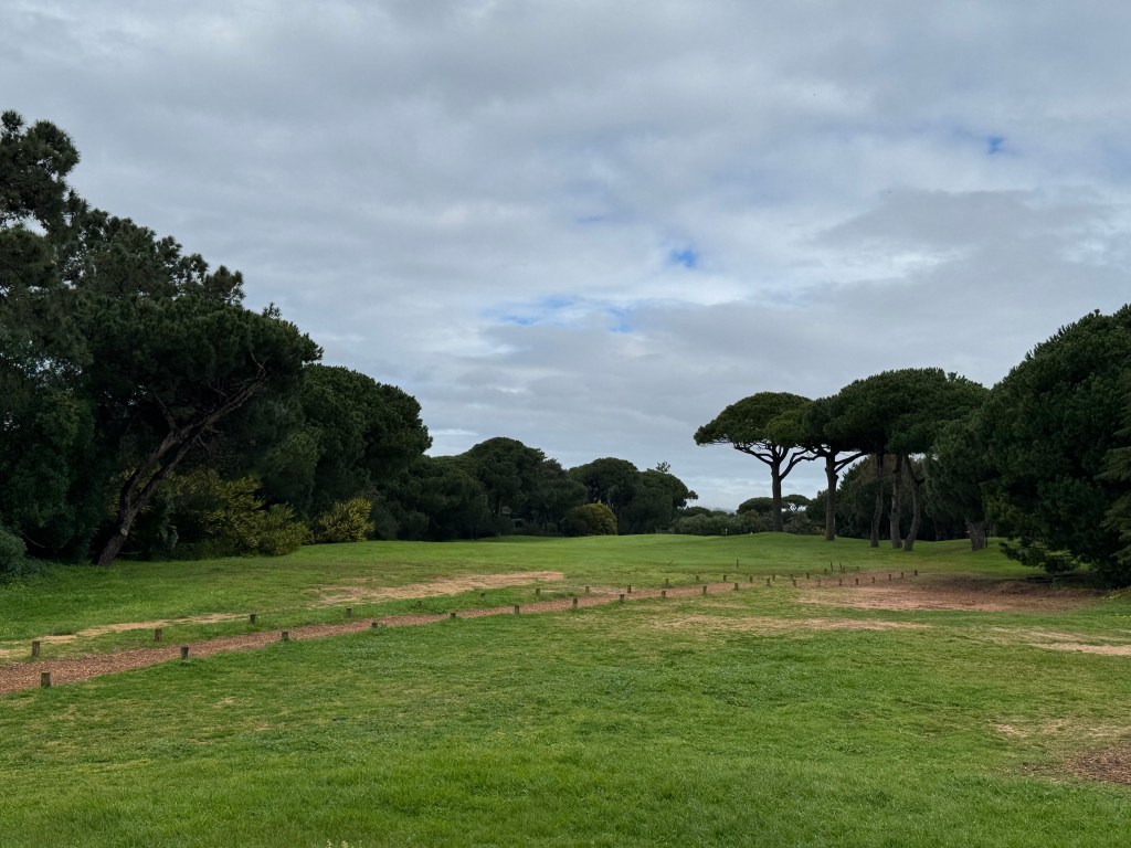 Nach allem, was ich vorher gelesen habe, erwarte ich einen klassischen Parklandkurs aus den 1980er-Jahren, wie man ihn oft bei Hotelanlagen findet. Platzarchitekt Robert Trent Jones Sr. sagt mir auch etwas. Seine tricky Bahnen durfte ich schon im Royal Park I Roveri bei Turin kennenlernen, oder in La Duquesa und natürlich Valderrama an der Costa del Sol. Um es gleich vorwegzunehmen: So spektakulär wie diese Plätze ist Quinta da Marinha bei Weitem nicht, unterschätzen sollte man den Par-71-Kurs aber nicht. Optisch läuft alles einheitlich, die 3 gerade, die 4 biegt nach links. Die Fairways sind wunderbar zu spielen im Regen, die Grüns erstaunlich flott. Interessant ist die Wegführung: Mal muss man zurück, ein paar Mal eine andere Bahn queren, um zum nächsten Tee zu kommen. Was heute auf dem verwaisten Gelände nichts ausmacht, bei normalem Spielbetrieb aber …