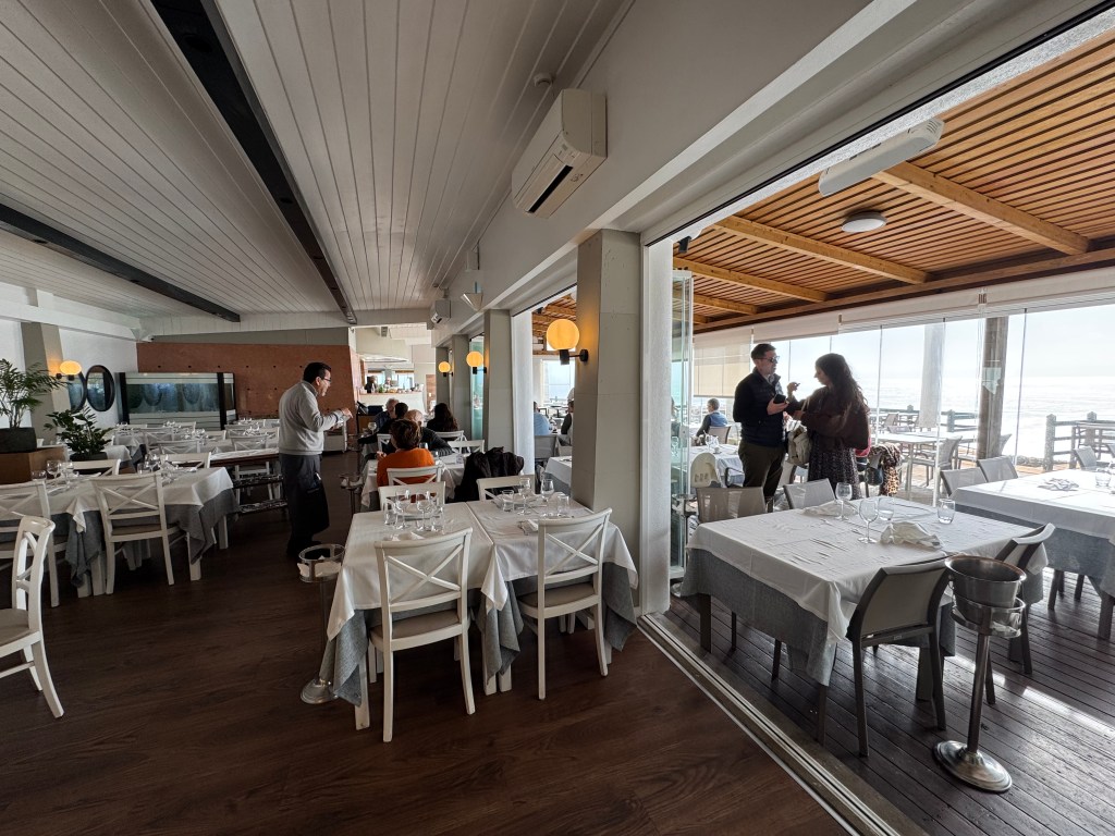 Ich lasse auch hier das Clubhaus links liegen und fahre zwei Kilometer hinunter zum Strandrestaurant des Quinta da Marinha Hotels: Im Restaurante „Monte Mar“ speist man mit Blick auf Brandung und weiße Gischt ausgezeichnet Fisch und Meerestiere.